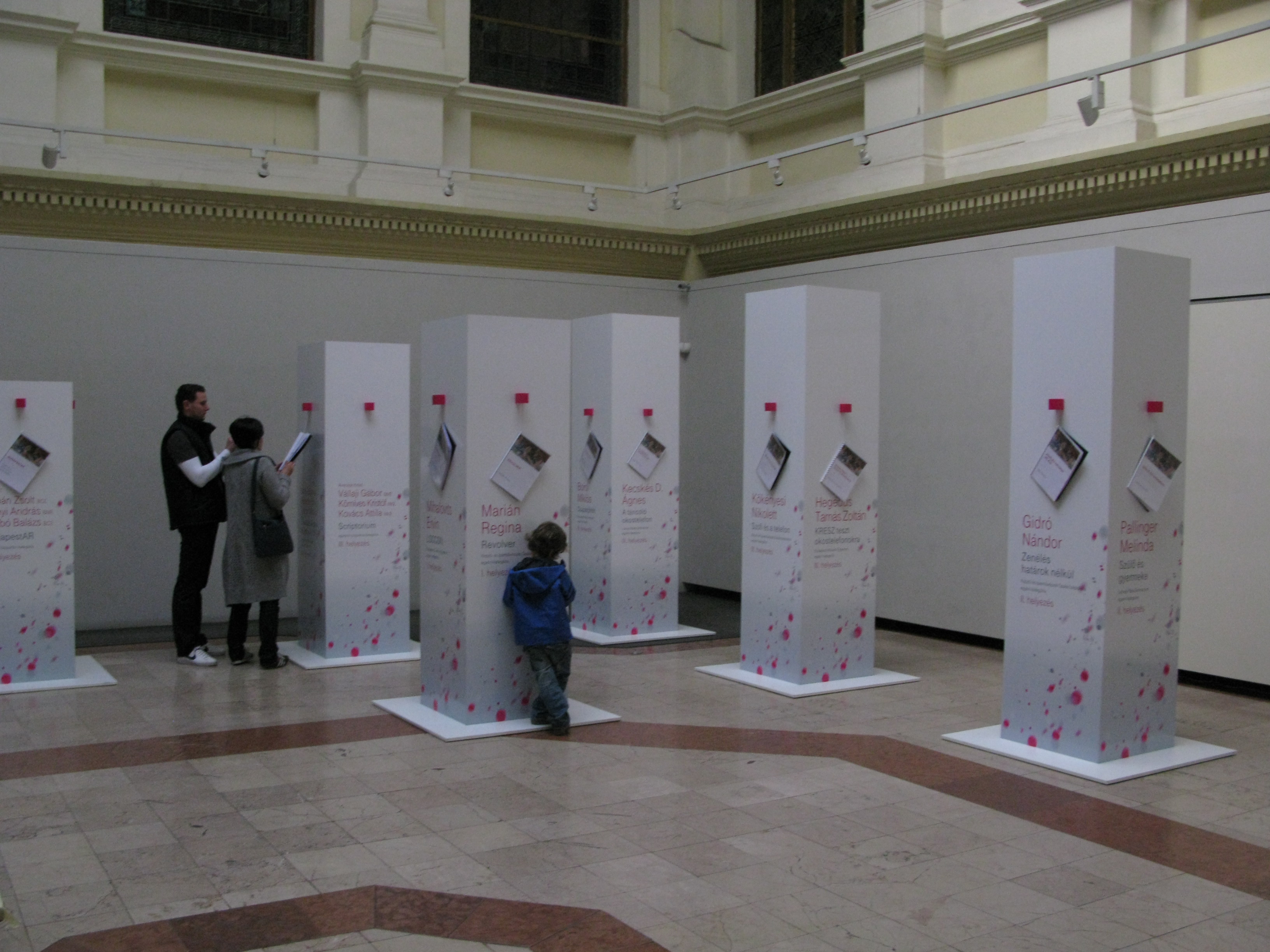 Nos el?ször a kiállítás elég kihaltnak t?nt: csupán üres asztalok és T-Mobile-os oszlopok voltak a teremben. Amint azonban elkezdtem olvasgatni a pályázati m?veket az oszlopokra kiaggatva, hirtelen az ötletekkel megtelt a terem és már nem is hiányzott semmilyen installáció. A kedvencem Dacsef Simon „Útveszt?” cím? pályamunkája volt, amely igérete szerint „Belép? egy új világba”! A „változás reprezentáló” alkalmazás egy új mobilos (szerintem fantasy világ?) építését segíti, olyan módon, hogy a kiválasztott szerepl?nk egy Avatar-mozifilm-szer? világban mobil chattel, webkamerázik és egyáltalán kommunikál a mobilos közösségi térben. Igazán fantáziadús elképzelés, és a fiatal ötletgazdából simán kinézem, hogy kicsit kés?bb képes lesz az elképzelését színes háttérfigurákkal és játékokkal megtölteni. Talán pont az ilyesmi alkalmazások lesznek egykor a Facebook f? kihívói… hiszen egykor majd a Facebook-?rületnek is lesz egy új kihívója, és ez talán a mobilos világból érkezhet! Íme Simon pályázati anyagának fotójai: