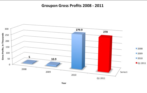 TOP 1.) GROUPON IPO: ezt igen nagy érdeklődés övezi, de nagy a szkepszis is. Utóbbit jelzi, hogy a kb. egy hete közzétett árbevételi számokat sokan hitetlenül fogadják. Kockázatosnak és gyanúsnak tartják a hirtelen kiugró növekedést, amelyet el is hiszünk nekik az ábrát nézve: